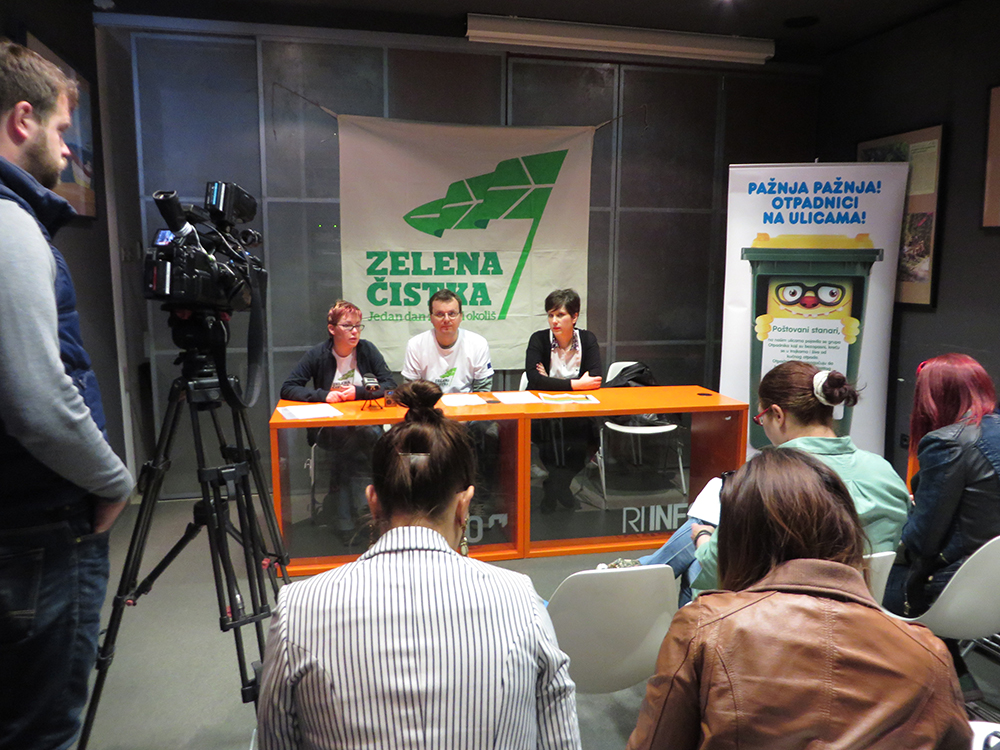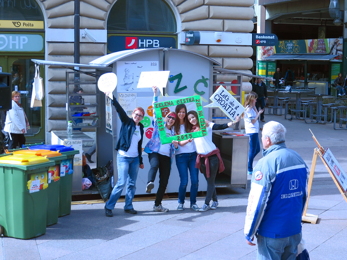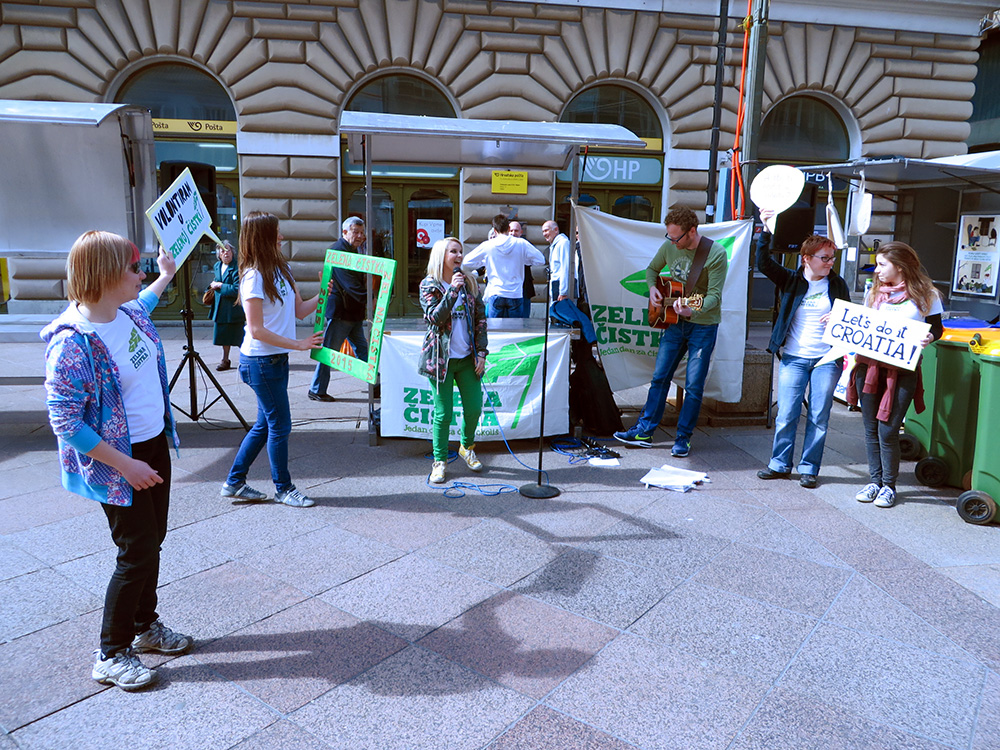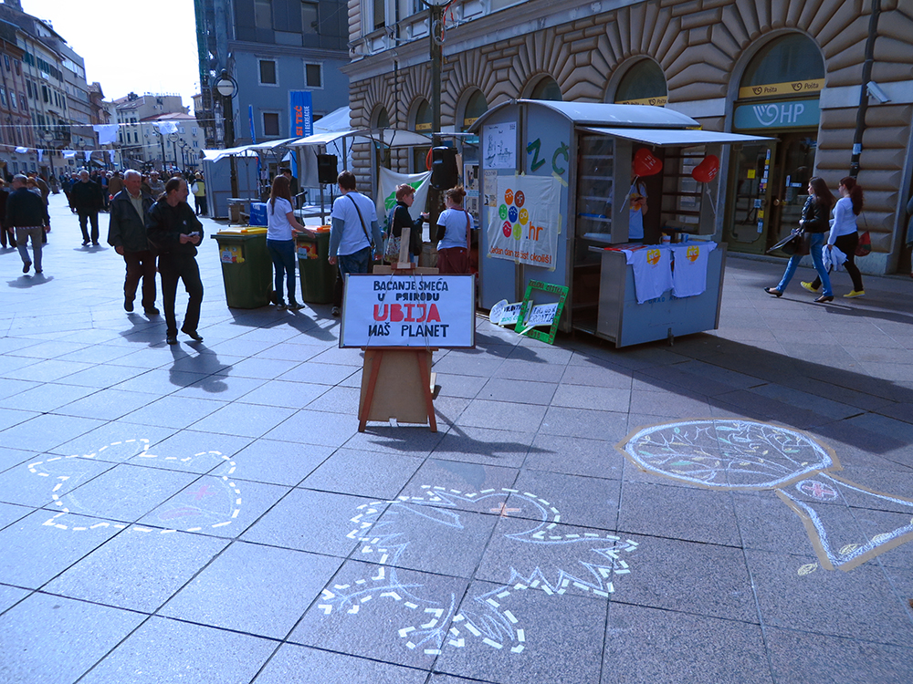 Rijeka, 14.4.2015. – Nacionalna kampanja Zelena čistka 2015. ušla je u završnicu i u subotu, 18. travnja, ponovo će cijela Hrvatska zajednički čistiti otpad iz okoliša. Na riječkom Korzu volonteri su kroz edukativno-promotivni program još jednom pozvali sugrađane na sudjelovanje.