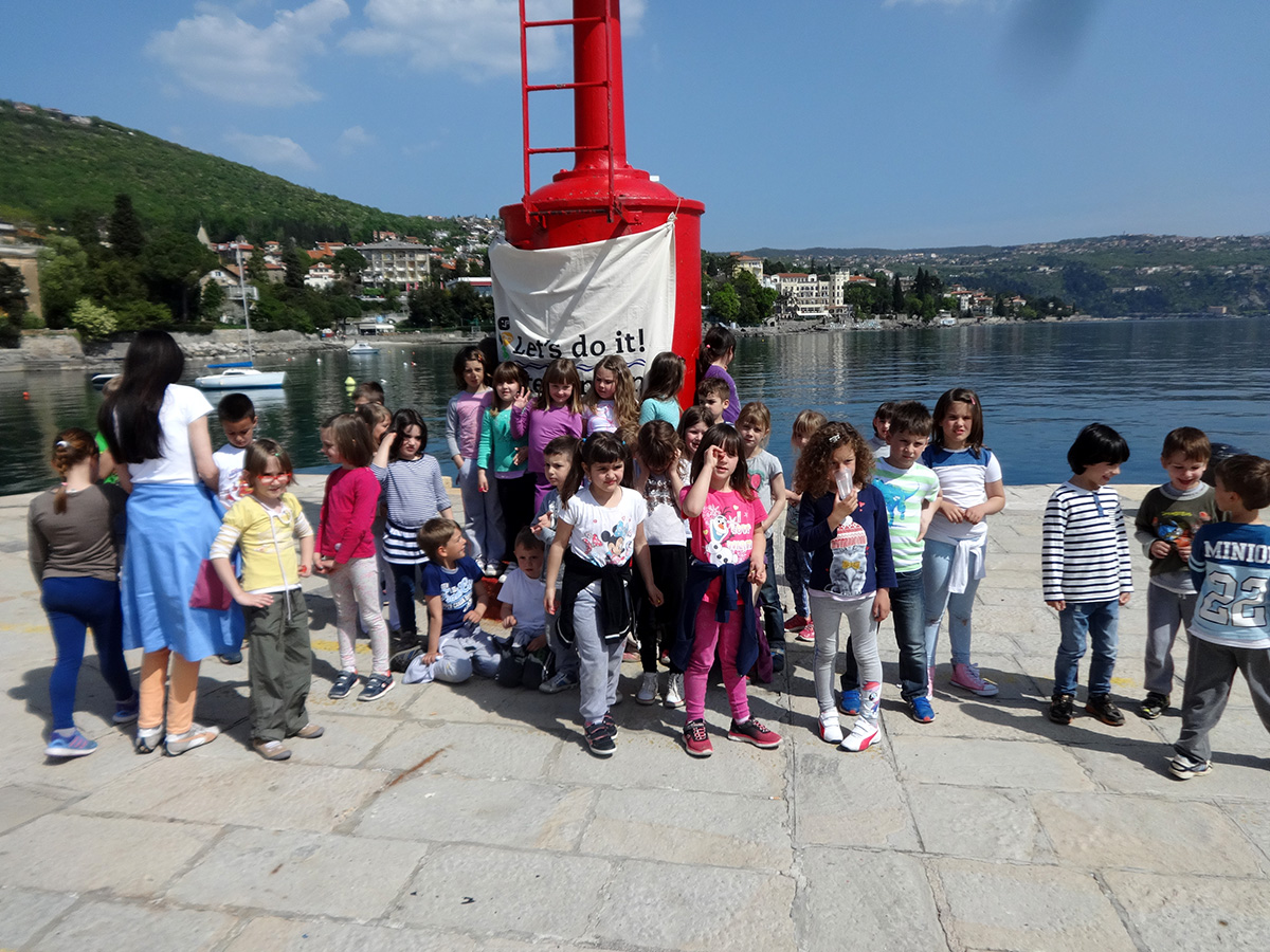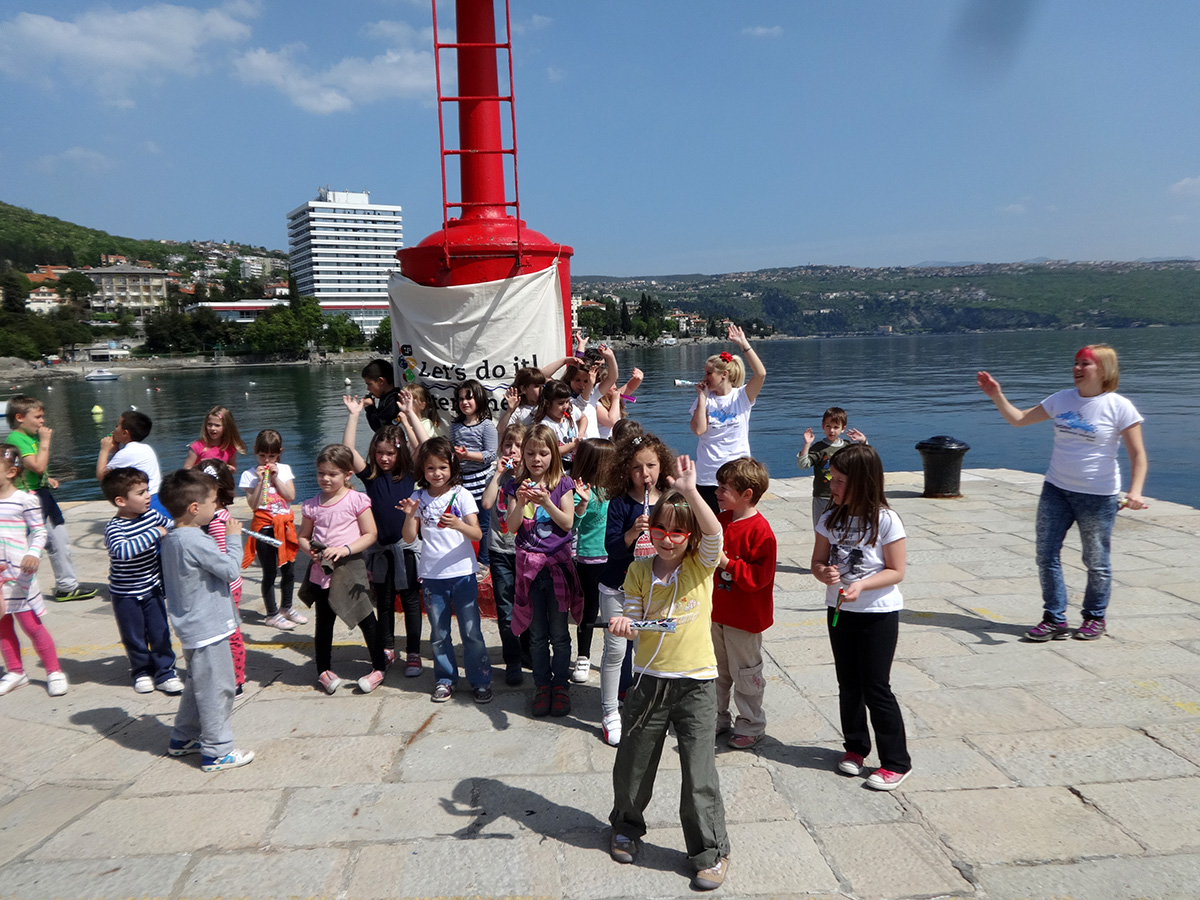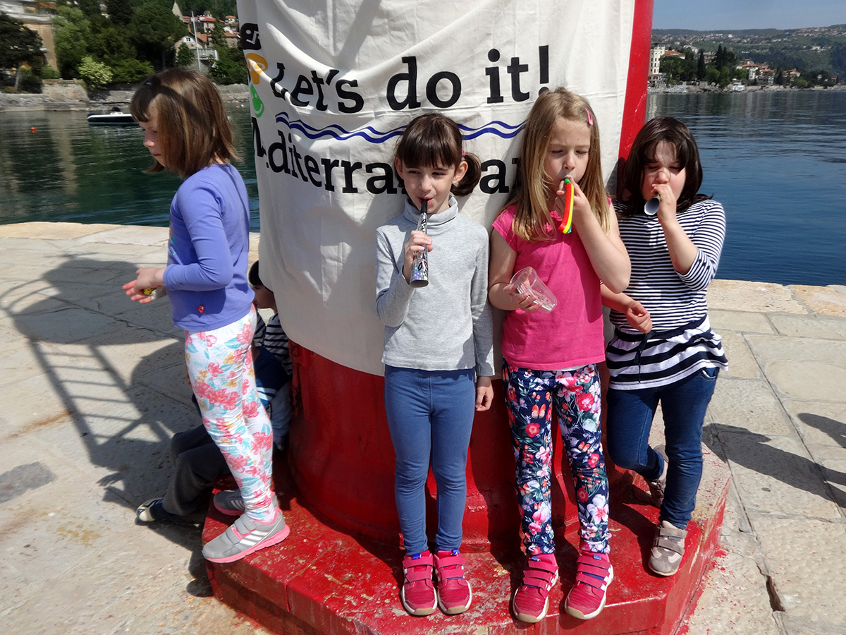 Opatija, 22.4.2015 – Uz dječju ciku i sirenu brodica na opatijskom mulu lansirana je Plava čistka, u sklopu regionalnog projekta mediteranskih zemalja Let’s do it Mediterranean! i obilježen Dan planeta Zemlje.